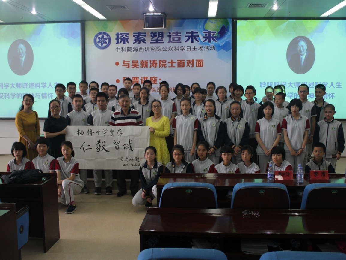 在厦门市集美区,海西研究院厦门稀土材料研究所也通过开放实验室带领学生做科学实验、科普讲座、互动问答等形式组织了公众科学日活动,宋立军、张晨、赵志刚、王艳良博士分别做了《宏观及微观世界之美》、《为什么我们的长相酷似父母亲》、《神奇的稀土》等科普课程,通过亲身体验、互动问答、奖励等多种形式活跃课程气氛,让孩子们从中感受科学研究的乐趣。具有初级化学知识的初中生对课程内容很感兴趣,并在课后就稀土方面的问题向老师虚心请教,有的学生甚至咨询今后如何才能进入中科院工作。