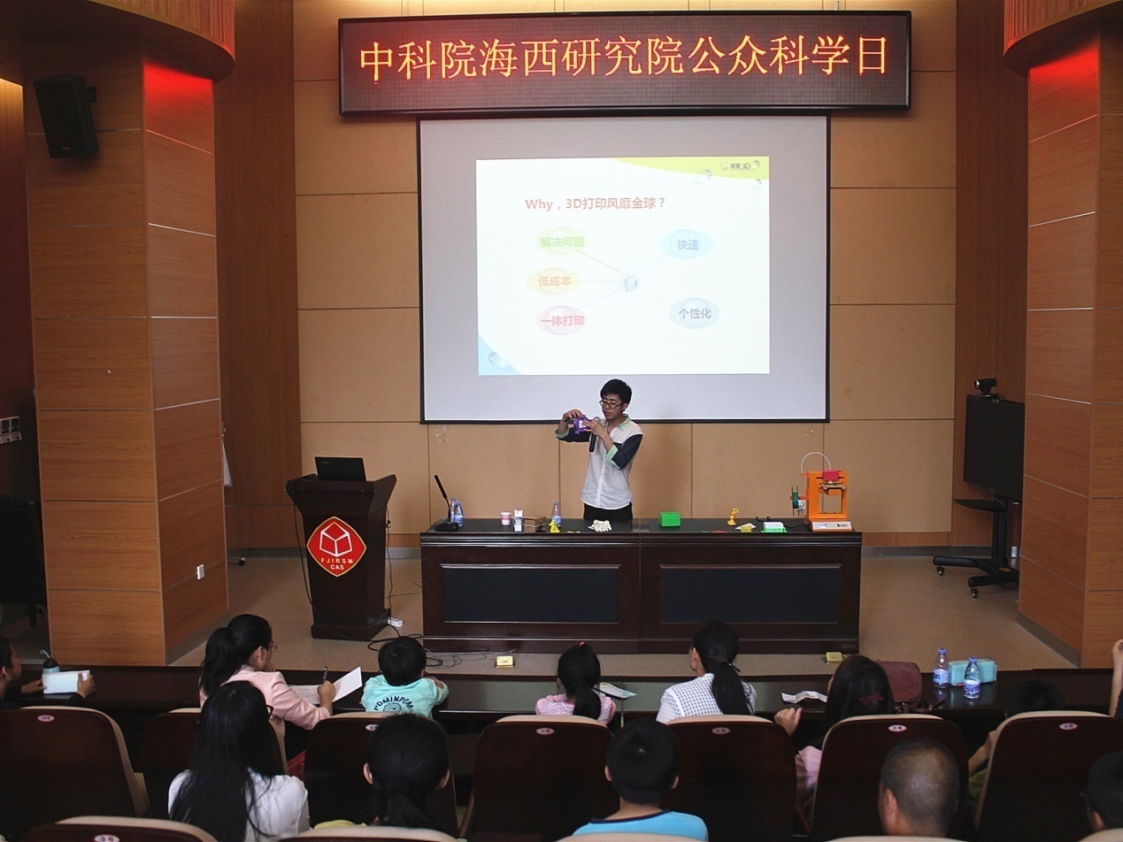 5月20日上午,一队队青少年朋友带着对科学探知的渴求,走进了中国科学院海西研究院杨桥西路园区,这里正在举办一场以“探索塑造未来”为主题的公众科学日活动。《与吴新涛院士面对面》还是《体验“智造”的乐趣》?是《从超能陆战队说起的科学世界》还是《3D打印DIY》?孩子们手里拿着参观券,选择自己心仪的科普讲座和科普活动,有的走向纳米楼,有的走向化学楼,体验和探索科学的未知世界。