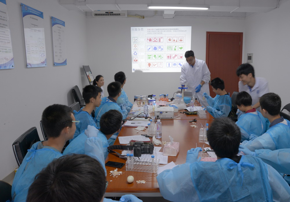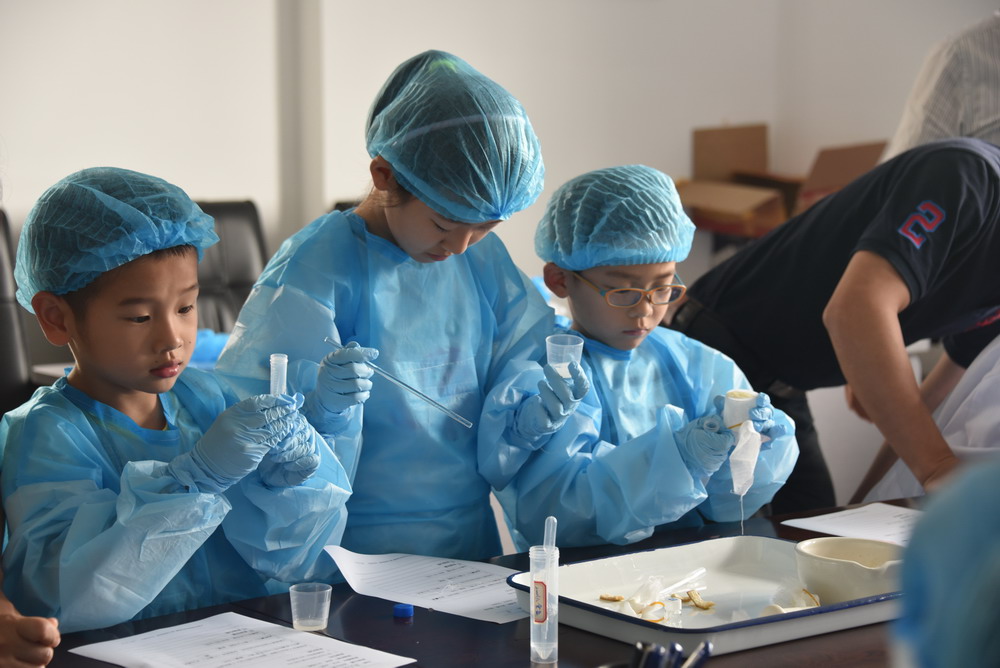小朋友们在厦门稀土所的实验室里做DNA实验