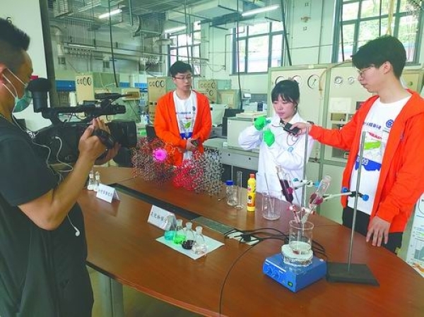 可以观测到纳米尺寸的扫描电镜、给物体做“核磁”的分析仪器、常温保持38℃的饮水杯、比头发丝细但是比钢还强的碳纤维、仅有7公斤重却结实无比的自行车、捧在手里的世界最轻最薄最强的材料……在实验互动和参观环节中,大家参观了科普实验,还有机会近距离观察和操控实验仪器,当一次化学家,并向大咖科学家提问请教。