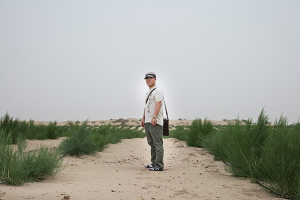 中科院新疆生态与地理研究所李丙文副研究员在策勒县策勒乡托帕艾日克村梭梭肉苁蓉试验示范基地(8月2日摄)。他的项目结合当地生态工程建设,引种节水、价值高的梭梭荒漠肉苁蓉,推动当地肉苁蓉产业规模化、标准化的发展。目前已完成100亩梭梭肉苁蓉试验示范基地的管网铺设和造林计划,完成3亩肉苁蓉接种试验。