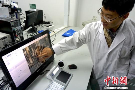 图为中科院西双版纳热带植物园中心实验室高级工程师王力博士,向记者演示使用蔡司超景深三维立体显微镜观察菊科瘦果表皮细胞形态的方法。张素 摄