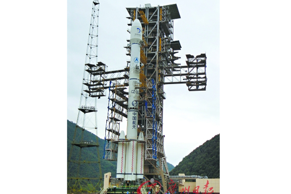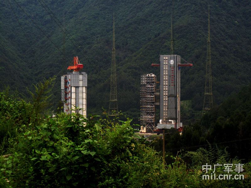 负责运送“嫦娥二号”的火箭已经矗立在发射支架上