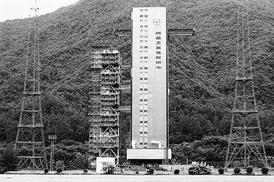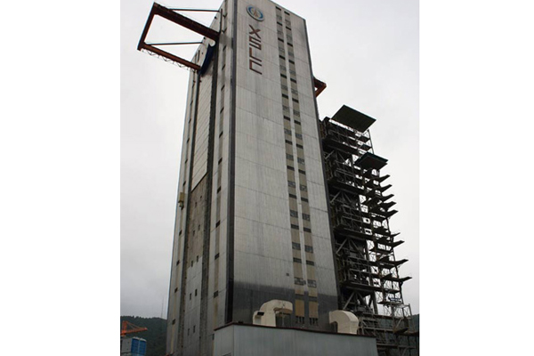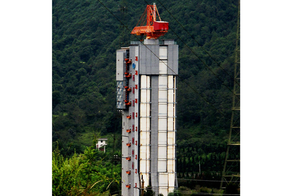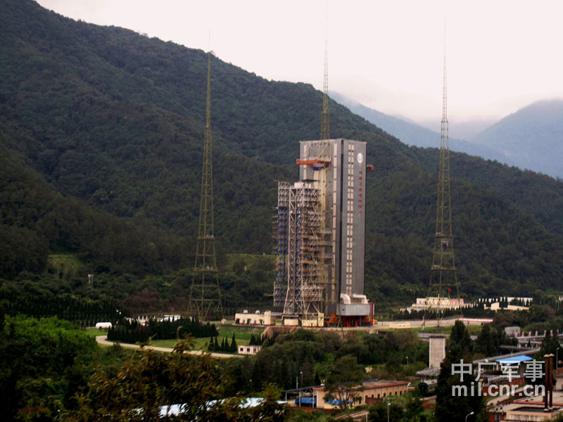 正环抱着“嫦娥二号”卫星及火箭的2号塔架