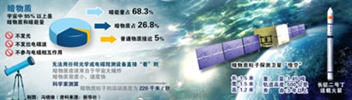 “悟空”暗物质粒子探测卫星是中国科学院空间科学战略性先导科技专项中首批立项研制的4颗科学实验卫星之一,是目前世界上观测能段范围最宽、能量分辨率最优的暗物质粒子探测卫星,将在太空中开展高能电子及高能伽马射线探测任务,探寻暗物质存在的证据,研究暗物质特性与空间分布规律。