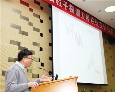 3月17日,在中科院国家空间科学中心,常进在介绍卫星下传科学数据初步的科学研究情况。新华社记者 金立旺摄