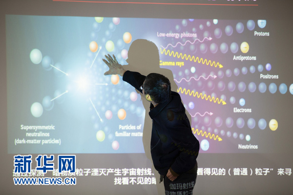 在中国科学院紫金山天文台,“悟空”首席科学家、中科院紫金山天文台副台长常进在介绍暗物质粒子探测卫星的科学成果(11月2日摄)。新华社记者 金立旺 摄
