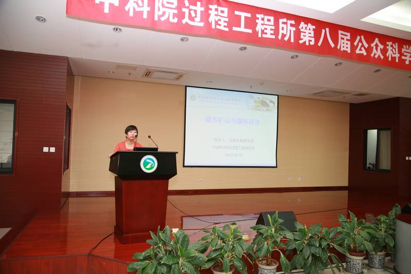 上午9点,在过程大厦多功能厅,参观者首先听取了过程工程所的情况介绍,观看了研究所宣传片。随后,湿法冶金清洁生产技术国家工程实验室的马淑花副研究员作了题为“城市矿山”的科普报告,她用许多生动的图片向大家讲解了城市矿山的概念,展示了城市矿山的危害,并简要介绍了循环经济。多相复杂系统国家重点实验室的叶树峰研究员作了题为“矿产资源与综合利用”的科普报告,报告紧密结合日常生活,介绍了我国矿产资源的分布、特点和需求,使大家对矿产资源有了进一步的认识。报告内容引起了学生们的浓厚兴趣,许多同学表示开始明白垃圾分类的重要性,开始了解资源利用的重要价值。