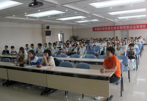 科普讲座是本次活动的一大亮点。上午,吴骊珠研究员作了题为《太阳能制氢》的科普报告。她的报告深入浅出,用通俗易懂的语言、形象生动的材料和清新优美的画面,讲述了太阳能光解水制氢的基本原理、研究现状和应用前景。下午,张兵副研究员的科普报告以《胶原蛋白》为题,讲解了胶原蛋白的基础知识、与生活的密切关系、如何获取和应用等。报告通俗易懂,诙谐有趣,观众们全神贯注地聆听,不时爆发出热烈的掌声。