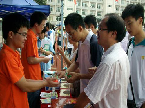 “走出去”活动部分,广州能源所依托广州市科普基地联盟的“2012广州科技活动周开幕式暨2012科学使者校园行”活动,走进了广州市第六中学。广州能源所科普基地成员挑选了低碳生活的系列展板,集中展示了与公众日常生活密切相关、覆盖衣食住行的低碳知识。还向中学生展出了新能源小展品,公众对太阳能手电筒、太阳能小风车产生了浓厚兴趣。“垃圾巧分类”、“天然气水合物知识冲关”、“新能源知识有奖问答”游戏受到了学生的追捧,也吸引了很多家长的关注。参加完游戏的很多学生和家长表示这种游戏非常有意义,学到了很多新能源知识。