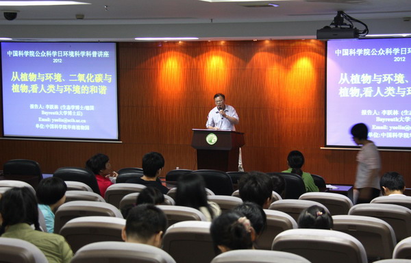 下午,科普报告厅,广州市第三中学的老师做了题为《观蝶》的科普报告,讲述了蝴蝶的辨识、蝴蝶与植物生境关系等内容,精美的图片及视频展示,让听众们感受到了自然状态下的蝴蝶之美;华南植物园李跃林博士则以《从植物与环境、二氧化碳与植物的关系看人类与环境的和谐》为题,深入浅出地介绍了与环境相关的研究及部分外国植物园的内容。华南植物园工作人员还带领游客参观了昆虫标本室,介绍了植物园大范围引种栽培植物过程中所做的植保方面工作。