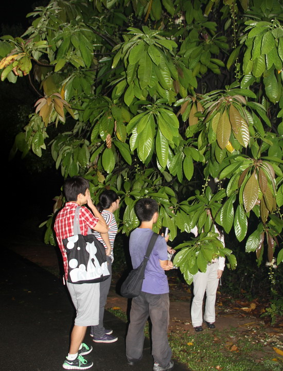 夜间,在4名辅导老师的带领下,40余名科普志愿者开展了一次夜探植物园的科普培训活动。