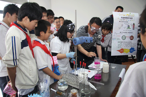 根据科技部、中宣部、中国科协《关于举办2012年科技活动周的通知》和中科院《关于举办中国科学院第八届公众科学日活动的通知》的精神,以“携手建设创新型国家”为主题的2012年全国科技活动周和以“科技创新惠及民生”为主题的“中国科学院第八届公众科学日”将于5月19日至25日在各地举行。作为徐汇区科技活动周的序曲, 5月12日,以“绚丽多彩的化学世界”为题的2012年度上海有机所公众开放日科普活动在中国科学院上海有机化学研究所君谋楼举行。上海市科委施强华副巡视员、科普处王志俊副处长,上海分院田申荣院长助理,徐汇区科委叶惠良副主任,枫林街道党工委谭琳书记、黄立波主任,上海有机所所长丁奎岭、书记郏静芳、副所长马大为、唐勇、俞飚等有关领导,以及宛平中学、零陵中学师生和枫林街道社区居民等共300余人参加了本次活动。