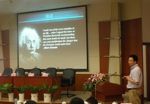 上海硅酸盐所研究员李永祥、副研究员翟万银和上海微系统所研究员狄增峰分别作了题为《居里兄弟1880年的发现》、《伏尔加河上的清道夫》、《核能与核武器一步之遥》的科普报告。他们用幽默的语言和缜密的逻辑,通过居里兄弟的发现对我们社会和生活产生的影响,讲述了材料科学研究者面对能源、环境、人体健康等社会问题所做出的贡献;通过大家熟悉的《伏尔加河上的纤夫》一图,展开河流的流体力学特征描述,生动地剖析了人体部分疾病的发病机理、相关预防和治疗方法以及生物材料的应用;通过核能与核武器的内在联系与区别,来讲述如何防止和平利用核能转变为核武器扩散。