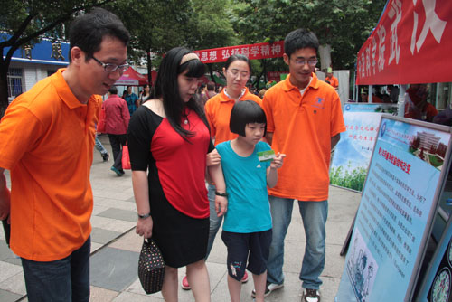 5月19日上午,中科院武汉物理与数学研究所在水果湖步行街参加了由湖北省科技厅统一组织的“第八届公众科学日”活动,正式拉开了武汉物数所“2012年科技活动周”的序幕。本次活动由科研处组织,所团委、研究生会共同协办,武汉分院院长朱耀仲、书记陈平平莅临指导。