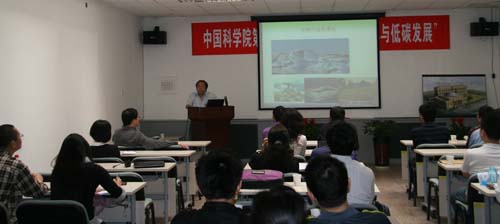 报告会由研究所计划财务处处长杨少春主持。王毅研究员首先做了题为“探索中国特色的低碳道路”的报告,阐述了我国低碳道路的形势与背景、未来低碳道路的指导思想和目标,及走低碳道路的政策措施。王毅研究员的报告精炼而全面,紧扣低碳发展的主题,并与听众一起展望了具有我国特色的低碳发展远景,对于现在全球倡导的低碳生活具有现实的启示和引导作用。王铮研究员的报告为“2030:从全球升温曲线说起”,他对1860年来的全球升温曲线做了深入的解析,同时,对中国经济发展的碳排放趋势作了动力学分析。他的报告内容丰富,幽默诙谐,帮助观众在阵阵笑声中加深了对有关问题的理解。此外,谭显春副研究员等也分别就相关问题进行了报告。