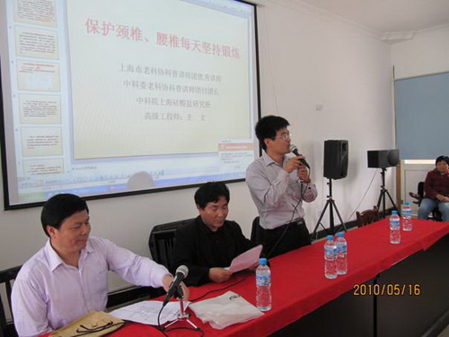 上海硅酸盐所老科协科普讲师团副团长、高级工程师王文作了《保护颈椎、腰椎每天坚持锻炼》的科普报告,并现场演示教村民如何自己动手做保健;硅酸盐所生物材料与组织工程研究中心副研究员翟万银博士作了《克隆人、干上海细胞与诱导型干细胞的应用》的科普报告,以生动浅显的语言讲解了这一生命科学和生物技术的研究热点,开阔了村民和中小学生的视野。参加活动的村民和中小学生认真听讲,踊跃回答问题,与科普志愿者互动。科普志愿者也带去了世博吉祥物海宝、文具、食品等发放给村民和中小学生,活跃现场气氛。