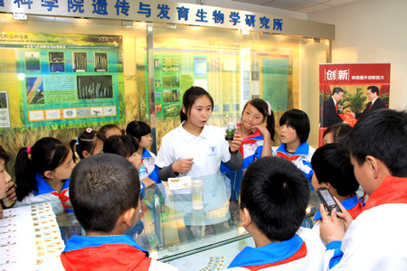 5月15日,遗传发育所举办了第七届公众科学日活动,来自北京第166中学、第35中学、牛兰山一中、西城区兴华小学和丰台区蓝天丰宛学校等的300余名师生和社会人士参观了遗传发育所。
