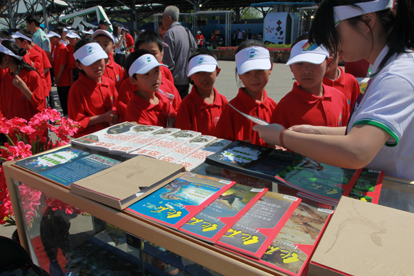 《化石》杂志丰富的科普内容与精美的版面设计吸引了很多对古生物学感兴趣的群众,大家饶有兴趣地翻看并提出许多疑难问题。《化石》杂志工作人员对所有的问题做了耐心细致的解答。