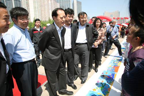 青岛市委副书记王文华现场参观了同学们作画,并亲切的与同学进行交流,希望同学们热爱海洋、保护海洋,鼓励同学们努力学习科学知识。