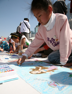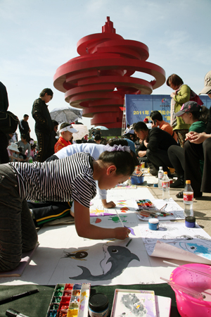5月14日,第四届青岛市中、小学生“我心目中的海洋”主题绘画比赛在“五四”广场举行。