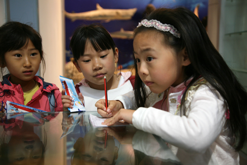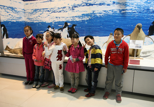 在学术报告厅,小朋友们和家长一起聆听了“南极和北极科学考察”专题科普讲座,并与科研人员进行可面对面的交流互动;在童第周、曾呈奎纪念展室,两位老科学家前曾用过的物品按照他们生前的生活习惯整齐的摆放着,他们艰苦朴素的生活作风、为科学奋斗终身的奉献精神让前来参观的市民感动不已;水族楼海洋科普展厅,鲸鱼骨架、海狮、企鹅、翻车鱼等珍稀动物标本,最受小朋友们的喜爱。