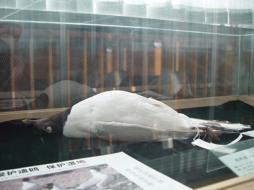 这只戴黑“头巾”,白“眼镜”,穿淡淡石青“衣服”的鸟叫遗鸥。分布在亚洲中东部,在我国的内蒙古、河北、山西、北京、甘肃均有分布,但数量极其稀少,近年来在内蒙古鄂尔多斯发现了其世界已知最大繁殖种群。(中国科学院网站记者 段煦摄影) 这只戴黑“头巾”,白“眼镜”,穿淡淡石青“衣服”的鸟叫遗鸥。第一个遗鸥标本是1929年在内蒙古弱水河边得到的,虽然发现者曾预感到这是一个新的鸟类物种,但动物学家们迟迟不敢对它作出定论。长期以来,人们始终围绕它是棕头鸥与其它鸥类的杂交产物还是一个新的物种争论不休。直到20世纪70年代,苏联的鸟类学家根据在哈萨克斯坦境内的繁殖鸟标本,明确地提出:它是一个独立的物种。它的名字--遗鸥,即遗漏之鸥,失落之鸟,流露出人们对其相见恨晚之意。