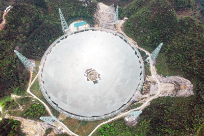 图为正在建设中的500米口径球面射电望远镜(FAST)工程。新华社记者 欧东衢摄