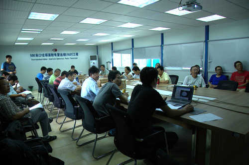 2014年911日下午,“FAST 圈梁制造和安装工程”验收会议在大窝凼台址现场召开,会议由FAST工程总工程师南仁东主持。中国科学院国家天文台、中国中元国际工程有限公司、北京建筑设计研究院有限公司、北京中城建建设监理有限公司及江苏沪宁钢机股份有限公司的相关人员参加会议。