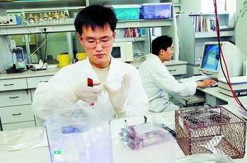 复旦大学上海医学院医学分子病毒重点实验室科研人员为早日战胜病毒,日夜奋战在抗击非典的科研第一线。图为科研人员在做病原学、病原生物学等课题的研究。