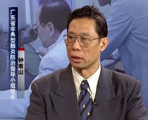 钟南山院士谈“非典”防治 CCTV.com消息:4月21日,《东方时空》特别节目——面对“非典”的挑战请来了广东防治非典型肺炎专家指导小组的组长钟南山院士,钟院士可以说是最早接触非典病人的专家,并且现在有很多重症的病人在他的医院已经痊愈了。钟院士就许多老百姓关心的实际问题给予了解答。