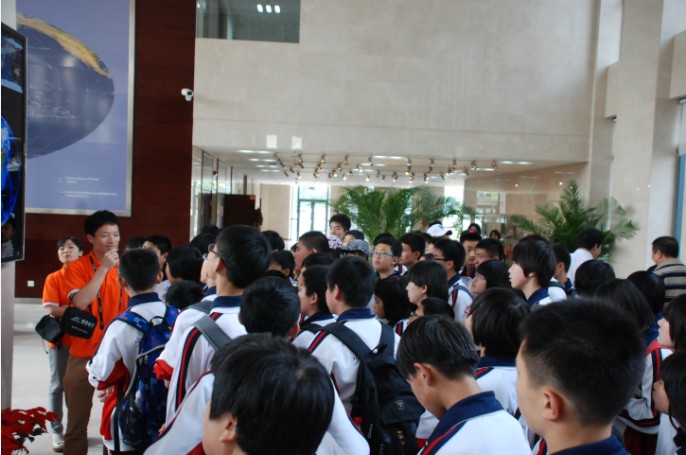 顺义15中同学听取卫星接收实时播报系统介绍