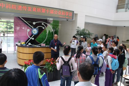 5月18日,中国科学院遗传与发育生物学研究所举办了第十届公众科学日活动,来自人大附中、北京市十一学校、北京十二中、理工大附中、海淀实验二小等160余名师生和社会公众参观了遗传发育所。