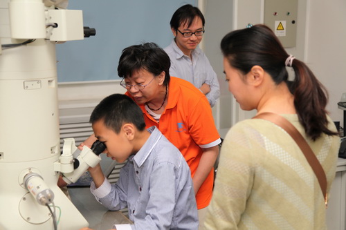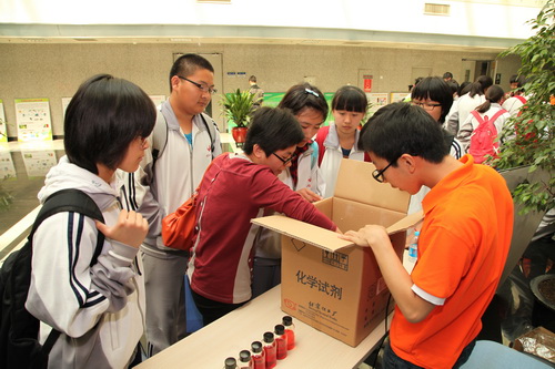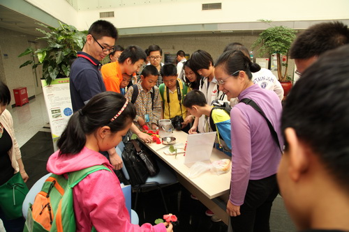 除科普报告外,还安排了科普画廊、科学小魔术、科学实验、沙盘讲解、实验室参观等丰富多彩的科普活动。在科研楼一层大厅,“污水处理魔术手”、“奇妙的低温世界”、“清水两秒变墨水”三个科学小魔术台前,围满了好奇而兴奋的中小学生。他们通过观察有趣的实验现象,或是亲自动手实验,对相关的物理和化学知识产生了浓厚兴趣。《理化技术 创新为民》科普画廊展出了与生活密切相关的理化技术。纳米可控器件展示、低温材料展示、撬装煤层气液化装置沙盘模型参观以及透射电镜、扫描电镜等科学实验充分展示了理化所科研特色。这些科普项目涉及化学、物理、材料、科研仪器等多种知识,内容生动有趣,操作体验性强。参观过程中,学生们不时提问并动手操作,表现出浓厚的兴趣,在亲身体验的过程中轻松愉快地感受到了科学的魅力。