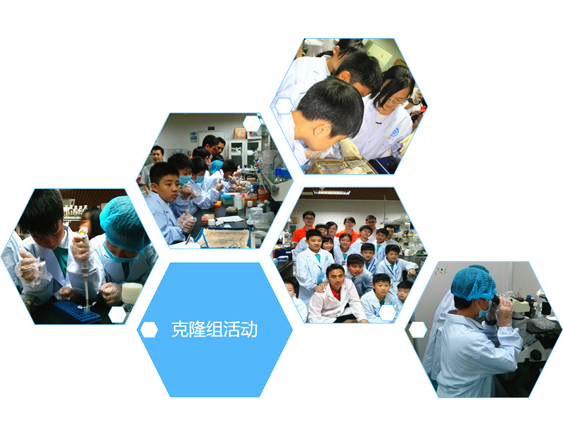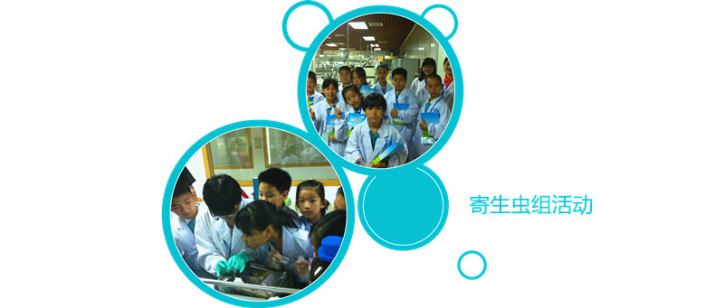 孩子们兴高采烈地来到生物院,听取了生物院的整体情况介绍,参观了生物院公用仪器中心先进的科研仪器装备。随后,根据各自的兴趣爱好,孩子们分成干细胞组、克隆组、寄生虫组、微生物组、化学组进入相关研究室开展实验互动。实验服都还没有穿好,孩子们就迫不急待地发问:克隆是什么样的?怎样才能像孙悟空和猪八戒一样能进行36变和72变?为什么IRC小鼠的毛是白色的?怎样转基因?转基因食物安全吗?怎样防治禽流感?荧光粉和荧光蛋白有区别吗?沾了含有寄生虫的水之后会不会从皮肤感染寄生虫?一箩筐的问题让科普志愿者都快招架不住了。
