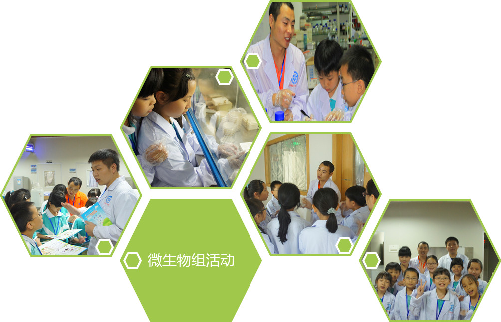 实验室里,生物院的科研成果更是深深地吸引着孩子们的目光,他们的困惑更多来自对生命现象的好奇和亲身体验科学研究的冲动。各科研团队根据研究方向设计的从宏观到微观的各类科学小实验都让孩子们充满兴趣。在科普志愿者的带领下,孩子们十分投入,他们在干细胞组从细胞、组织、器官、个体四个层面观察了多种干细胞及干细胞衍生的一系列功能细胞,并亲自动手操作了细胞换液培养等过程;在克隆组,孩子们学习了如何使用移液器,看到了如何给小鼠做手术,如何将基因注入到小鼠的输精管中等实验;寄生虫组的实验室里,孩子们观看了染色血涂片的制作过程,观察到红细胞中的疟原虫,还了解到寄生成虫从幼虫到成虫的变化;微生物组的孩子们看到暗室中发绿光的微生物平板图案,并亲自在平板中绘上了自己的名字和喜欢的图案;化学组的老师们则通过1+1≠2、铁树开花、色彩的奥秘、大象牙膏等有趣的小游戏向孩子们普及了分子的间隙与扩散、置换反应、有色物质的生成、双氧水的分解等化学知识,更让孩子们制作了专属于自己的有机分子球棒模型,普及了有机分子空间结构的相关知识。