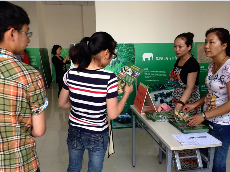 昆明动物博物馆延续科技周“科学生活 创新圆梦”的主题,将馆内具有特色的“走近大象”主题展送入社区,与昆明市万宏社区工作站联合进行了社区科普。主题展内容主要介绍了“象?”、“人象之间”、“我们的野生动物朋友”三个部分。“象?”、“人象之间”介绍了现今最大的陆生动物—象的身体结构、形态特征、生活习性、行为与生存以及人象之间的关系等,使人们对象这一最熟悉的动物有一个更科学、更深刻的认识。“我们的野生动物朋友”介绍了世界范围内正面临生存威胁的10余种珍稀濒危野生动物。