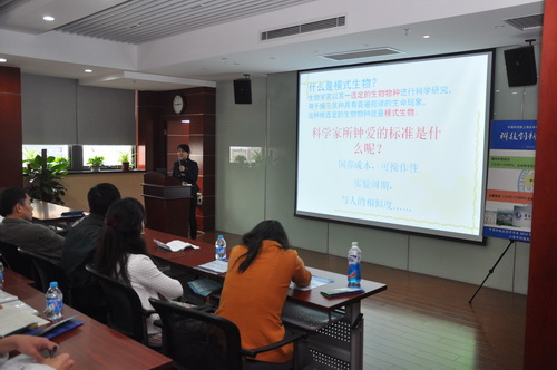 科普趣味报告环节总共安排了三场精彩的小报告。来自分子心脏研究组的博士研究生黄吉均同学介绍了干细胞的发现历史以及心肌细胞的干细胞修复策略;分子遗传学研究组博士研究生魏泽峻同学以“遗传那些事儿”为题,援引经典生物学实例,从不同角度讲述了课本之外的遗传学奥妙;斑马鱼平台董梅博士则向大家介绍了低级单细胞模式生物过渡到高级哺乳模式生物的桥梁——斑马鱼,以及斑马鱼在现代生物医学领域中的作用。精彩的报告引发现场同学们热烈地讨论和提问。
