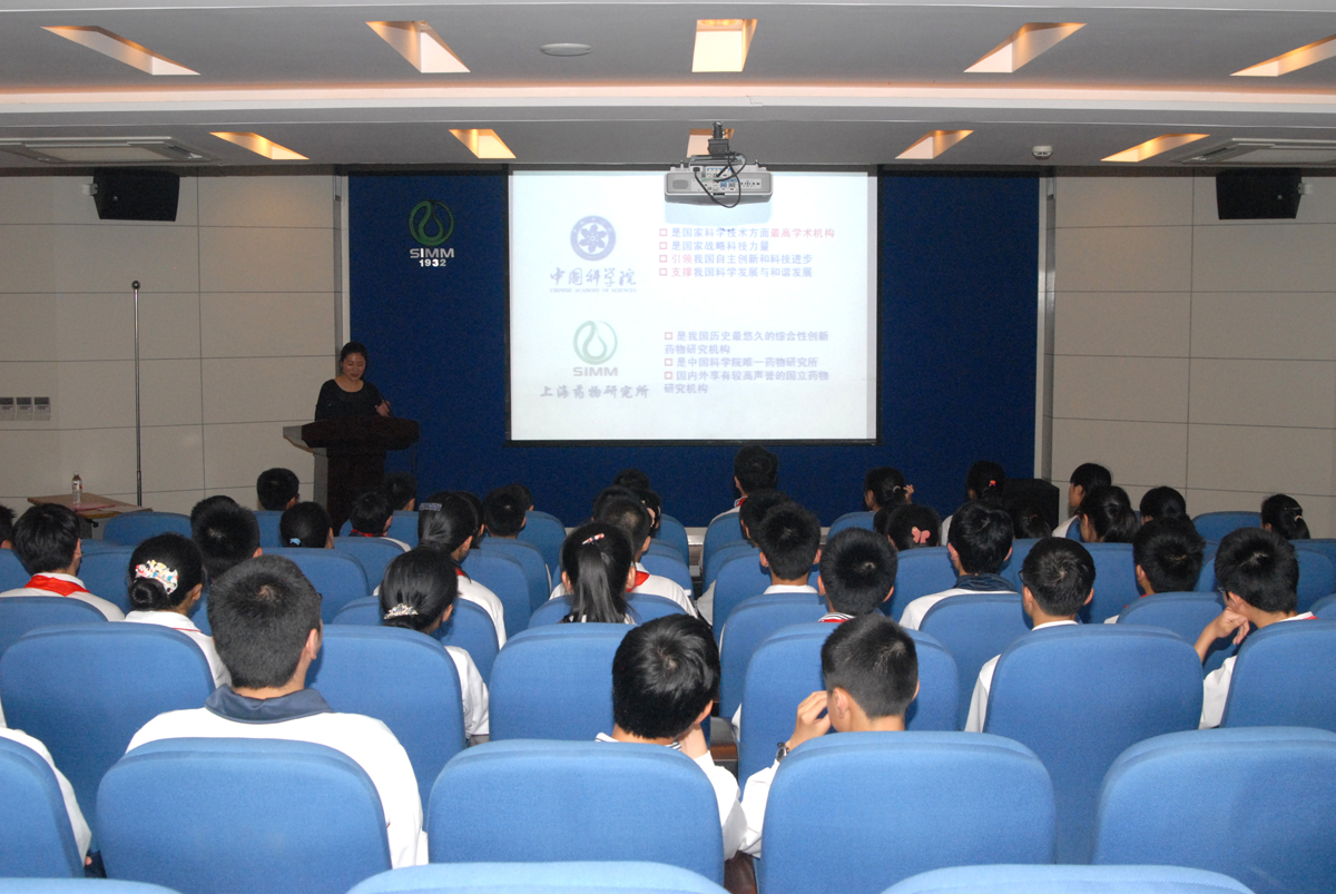 活动在承嘏厅拉开序幕。药物所副所长叶阳代表上海药物所热情欢迎比邻的同学们来到新药研究的科学殿堂,了解科研工作者们如何从事新药研究,近距离接触科学,增加兴趣。科研处副处长关树宏向同学们简要介绍了药物所的历史、发展现状,以及新药研发的流程。