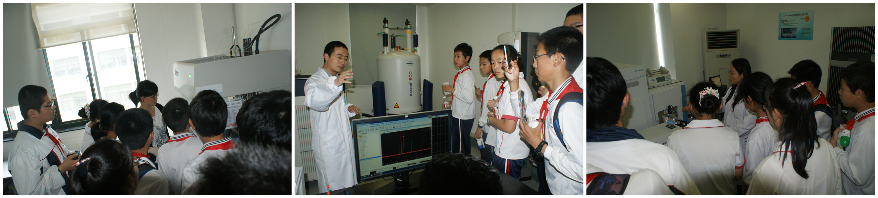 科普专题讲座结束后,在志愿者的引导下,同学们分批参观了部分研究室。在标本室,叶阳副所长为同学们耐心介绍植物标本八角,以及八角经过提炼、多次改造后逐步成为治疗甲流的达菲的故事;在实验楼,同学们近距离接触了质谱实验室、核磁实验室以及自动化移液工作站等设备,年轻科研人员细心讲解相关物理原理和科学知识。