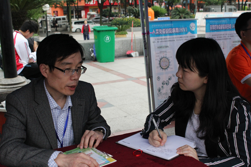 中国科学院武汉物理与数学研究所一贯重视科普工作,派出了由所长助理李发泉研究员带队、一行共7人的科普宣传志愿者队伍参加了此次活动。在科普活动现场,他们贴近公众实际需求,围绕百姓日常生活,集中展示了武汉物数所多项重大科技创新成果,如网瘾、酒瘾等成瘾行为的危害和如何预防,激光雷达对环境的监测等。这些展示让百姓了解了最新科技发现,加深了对科学的认知,也亲身感悟到了科技的魅力和对生活的影响。郭跃进对武汉物数所展示的内容产生了浓厚的兴趣,与志愿者进行了亲切交谈。湖北日报记者也被吸引过来,对该所展区进行了采访。