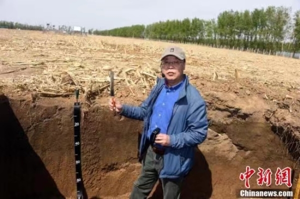 5月11日,探访中国科学院“黑土粮仓”科技会战“梨树模式”示范区,中科院沈阳应用生态研究所张旭东研究员作为“梨树模式”创建者,在示范区基地介绍黑土地地下分层情况。“梨树模式”是由中科院东北地理与农业生态研究所、沈阳应用生态研究所和中国农业大学合作研究开发的保护性耕作模式,最早在吉林省梨树县建立研究基地并推广示范而得名,为因地制宜开展东北黑土地保护与利用提供系统解决方案。中新社记者孙自法 摄