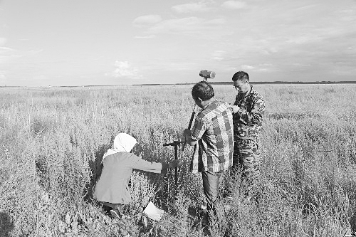 选好采集土壤样本的地点后,科研人员用锹铲等工具挖开半米见方的大洞,用专门的采集工具插到1米深的地下将土壤取上来,再进行密封保存。在沼泽地边缘、森林草地,科研人员细心地采集各种土壤数据,不辞辛劳。在收集完数据后,他们还要在长岭站等多个试验进行分析,整个过程耗时甚长。