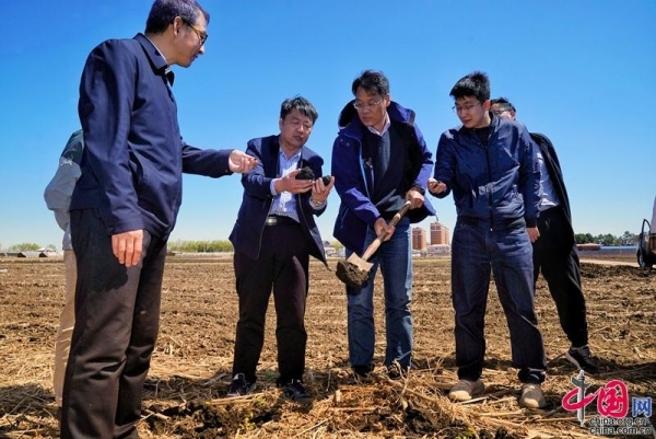 5月13日,探访中国科学院“黑土粮仓”科技会战“龙江模式”示范区。图为中国科学院东北地理与农业生态研究所研究员韩晓增(左三)介绍黑土地保护情况。中科院科技摄影联盟供图
