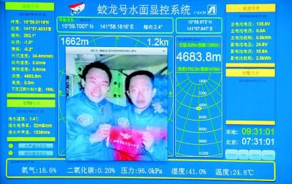6月19日早晨,马里亚纳海沟试验区。我国“蛟龙”号载人潜水器进行7000米级海上试验第二次下潜,下潜687分钟,最深到达6965米。此次下潜既再次创造了我国载人潜水器最大深度纪录,又创造了下潜最长时间的纪录。