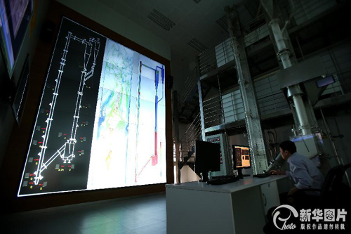 2013年7月26日 走进“虚拟过程工程”实验室 7月26日,一名研究人员正在中科院过程工程研究所操作“虚拟过程工程”平台。中科院过程工程研究所的多相复杂系统国家重点实验室于2011年在国际上首次建成“虚拟过程工程”平台,实现了物理与虚拟装置的同步数字化运行控制以及多相复杂流动结构的三维准实时的高精度测量与显示。目前,该课题组深入应用模拟技术,国内外9家世界500强企业已经与该课题组建立合作关系,涉及石油化工、石油勘探开采、煤炭、冶金和能源等领域。新华社记者 金立旺 摄