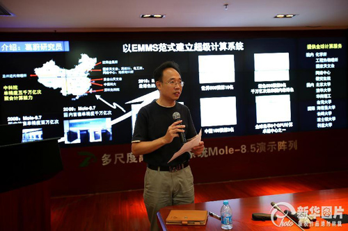 2013年7月26日 走进“虚拟过程工程”实验室 7月26日,一名来访者在中科院过程工程研究所参观超级计算系统Mole-8.5。这是我国研制出的首套面向多尺度模拟的GPU系统,双精度峰值1100亿次,目前是全球峰值超过1000万亿次的最节能的超级计算机系统之一。中科院过程工程研究所的多相复杂系统国家重点实验室于2011年在国际上首次建成“虚拟过程工程”平台,实现了物理与虚拟装置的同步数字化运行控制以及多相复杂流动结构的三维准实时的高精度测量与显示。目前,该课题组深入应用模拟技术,国内外9家世界500强企业已经与该课题组建立合作关系,涉及石油化工、石油勘探开采、煤炭、冶金和能源等领域。新华社记者 金立旺 摄