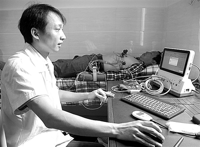 除了复查血糖,何蕉勤还做了一个心电图。由于心电图需要更专业的医生作出判断,吴明容把心电图上传到网上,再由定点医院的值班医生将诊断结果传回。“一般等半个小时左右就有结果传回来了。”吴明容笑着说,他曾经用这套设备在凌晨四点给一个心梗病人做心电图,经医生网络确诊后,病人马上被送到市医院做手术,一周后就康复出院了。
