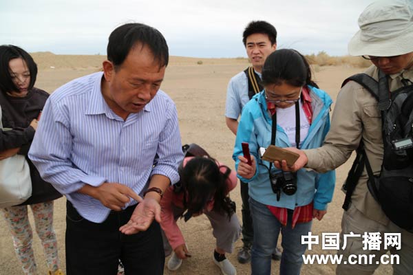 敦煌戈壁荒漠站站长屈建军介绍莫高窟防砂