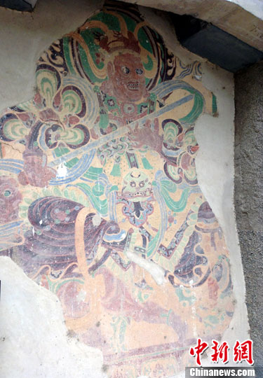 8月15日,敦煌莫高窟保护区,一处游客通道内,展示的精美壁画虽年代久远,但人物刻画栩栩如生,颇富历史、宗教、绘画艺术等价值。中新社发 孙自法 摄